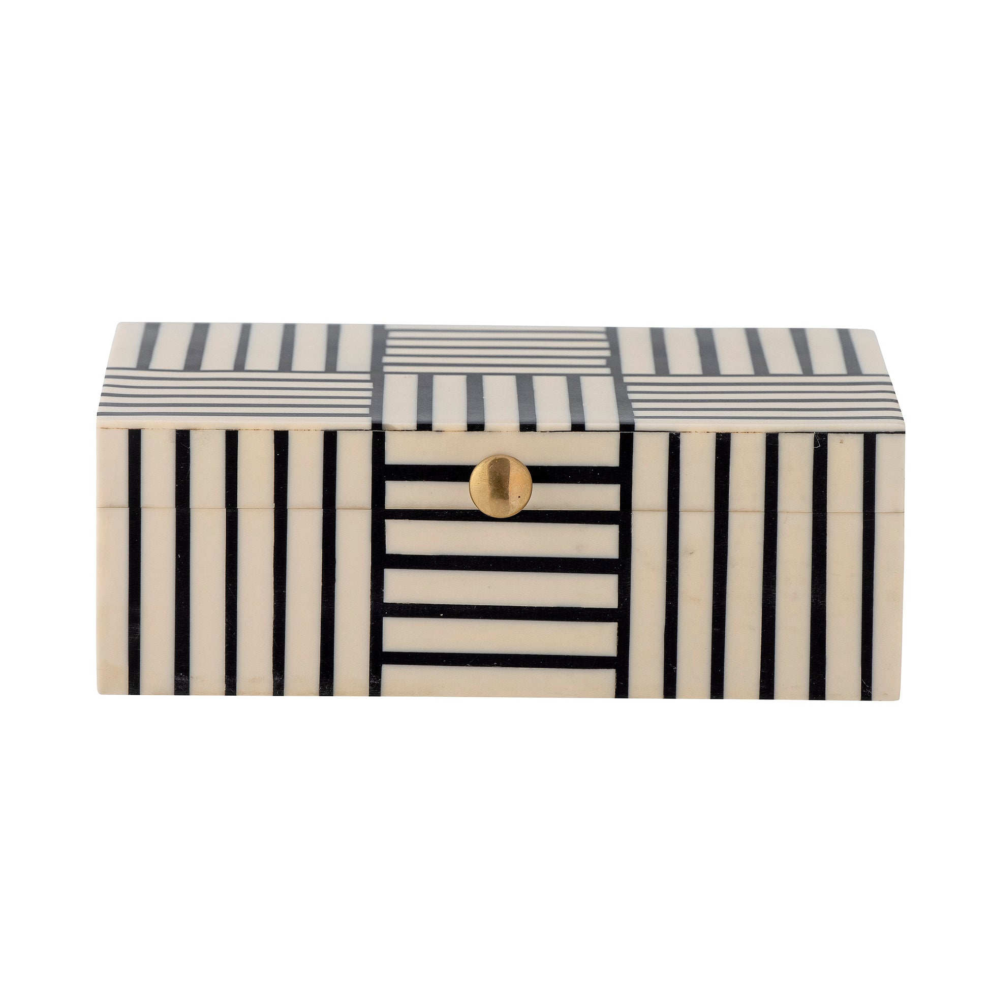The Neoma Box w/Lid by Bloomingville is both practical and beautiful. It is decorated with a beautiful graphic pattern in black and can be used for storing small items or simply as a decoration for the home. It is made of resin, which gives it a smooth surface and a soft touch.