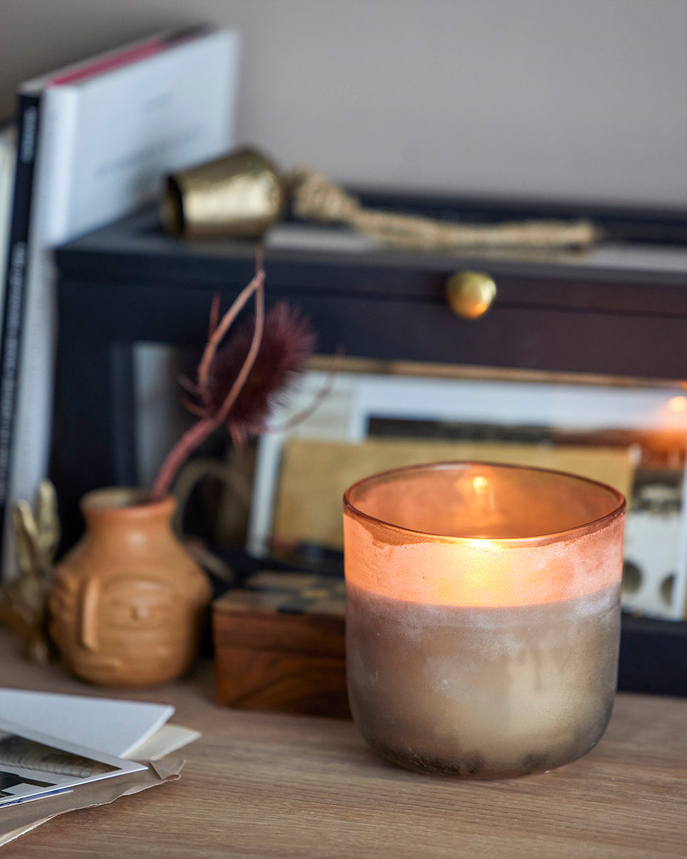 The No. 4 Lemon Verbena Scented Candle by ILLUME x Bloomingville brings new energy to your home! The scented candle is made from natural wax and is handmade of frosted glass in beige that complements any home decor. Infused with the lovely scents of lemon, verbena and herbs, this scented candle will add freshness to any space. Whether it's in your bathroom, living room, or bedroom, this candle will help create a relaxing and welcoming atmosphere. The scented candle comes in a beautiful gift box - perfect for any occasion.