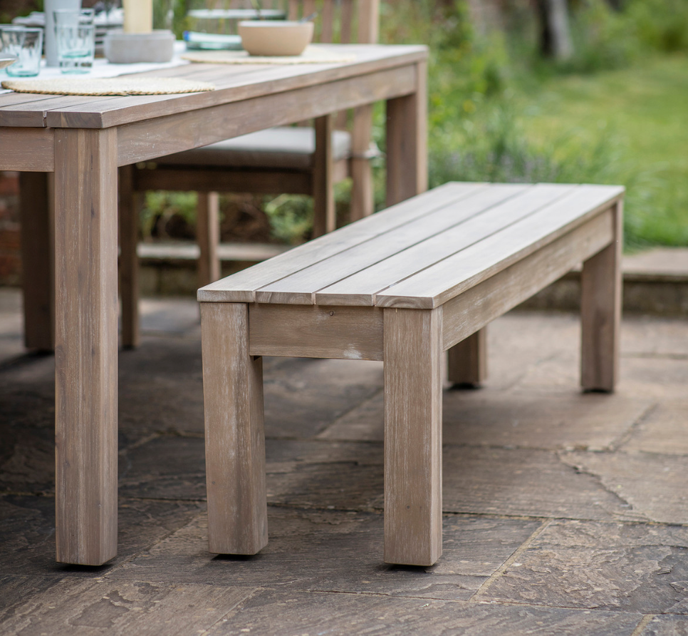 The Porthallow Bench is crafted in acacia and pairs perfectly with our matching Porthallow Rectangular Dining Table. It also comes accompanied by matching seat cushions which offer added comfort. Offering a stylish alternative to outdoor dining chairs, the bench is perfect for casual seating and can be ideally placed against a wall to optimise garden space.