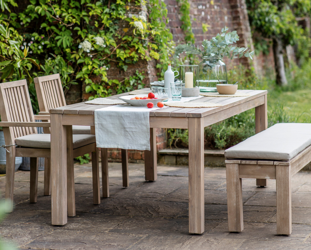 The Porthallow Rectangular Dining Table is designed to comfortably seat up to eight, making it the perfect large outdoor dining table for hosting. Made from acacia wood and finished with an oak wash.